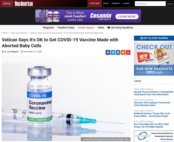 The Church's orthodoxy watchdog office declared that it is "morally acceptable" for Catholics to get vaccines made possible by abortion.