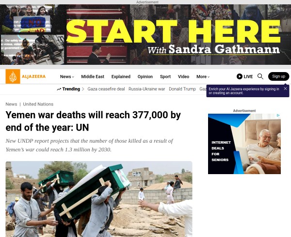 New UNDP report projects that the number of those killed as a result of Yemen's war could reach 1.3 million by 2030.